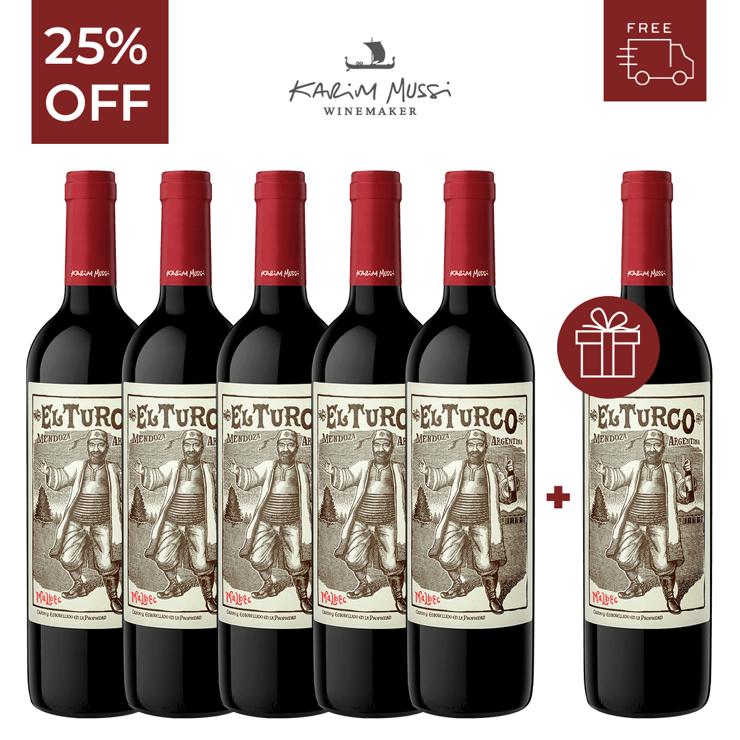 - 🎁 REGALO ESPECIAL: 1 botella adicional de “El Turco Malbec” (pagás 5 y llevás 6).