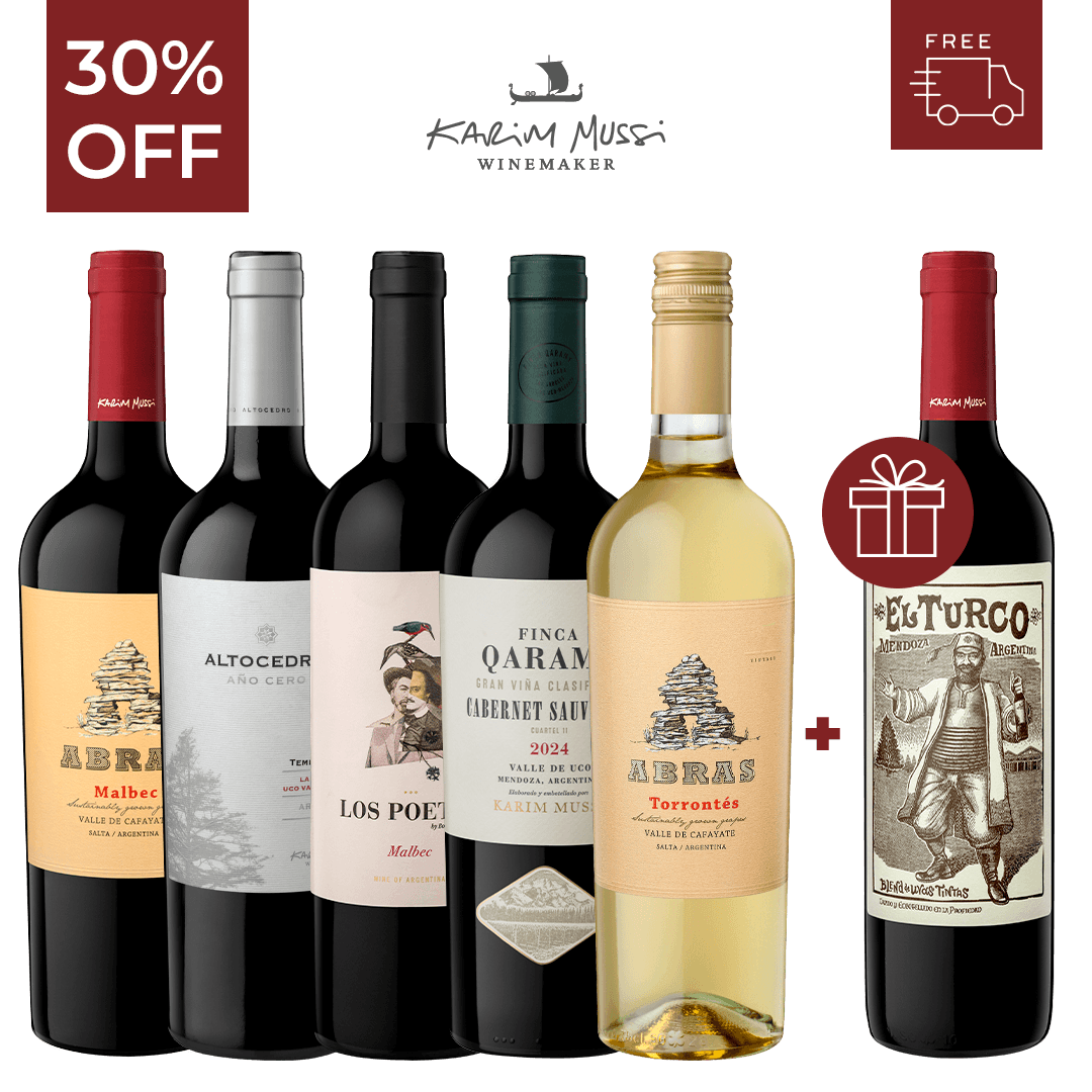 - 1 El Turco Blend (obsequio): Un blend sumamente equilibrado y expresivo, que logra transmitir la identidad del terruño, así como la firma del estilo enológico de Karim Mussi.